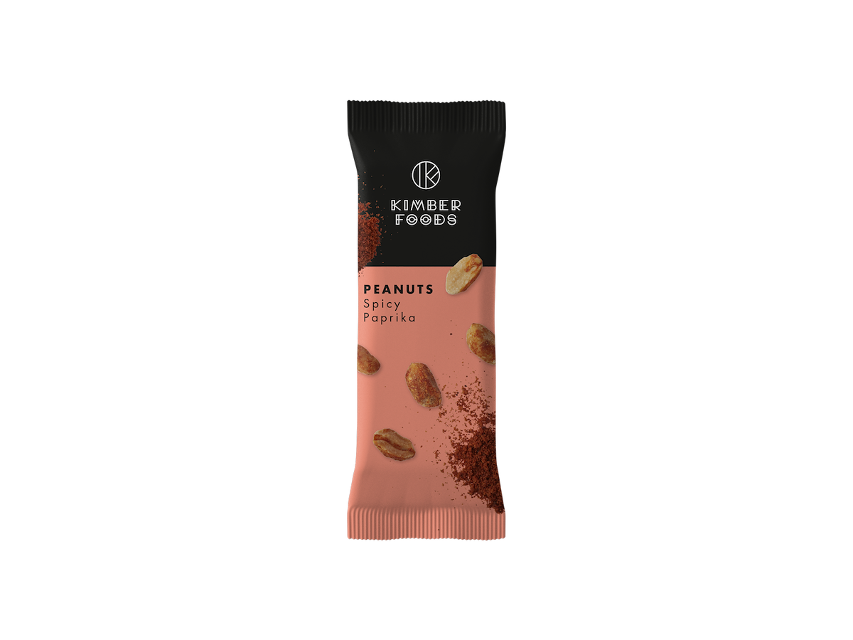 En peanut du ikke har smagt ligende. Den har en pikant smag af lidt prikkende paprika - et lille fyrværkeri af kryderi. Kimber Foods Peanuts Spicy Pakrika er lige til at have med på farten og i tasken.