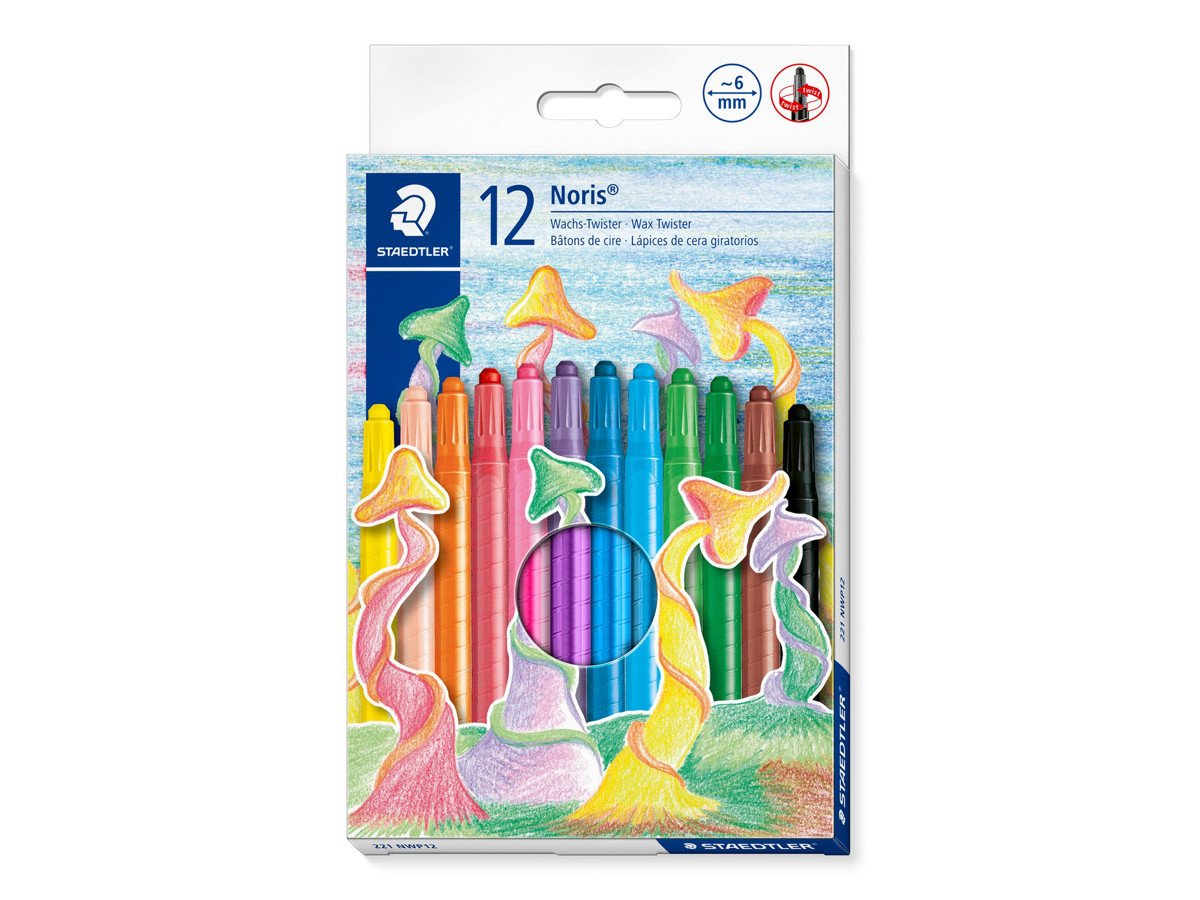 STAEDTLER's Noris Voks Twister 12 Ass/Pk er et fantastisk tilskud til enhver skrivebordskuffe, kunstnerkit eller skoletaske. Lad dine farver flyve med Noris Club Wachs-Twister.