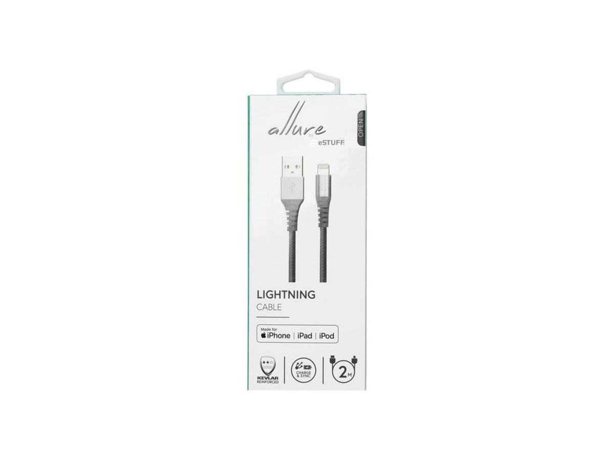 eSTUFF førsteklasses flettede nylonfiberkabel med slidstærke metalstik har en længere levetid på grund af de nøje udvalgte holdbare materialer.