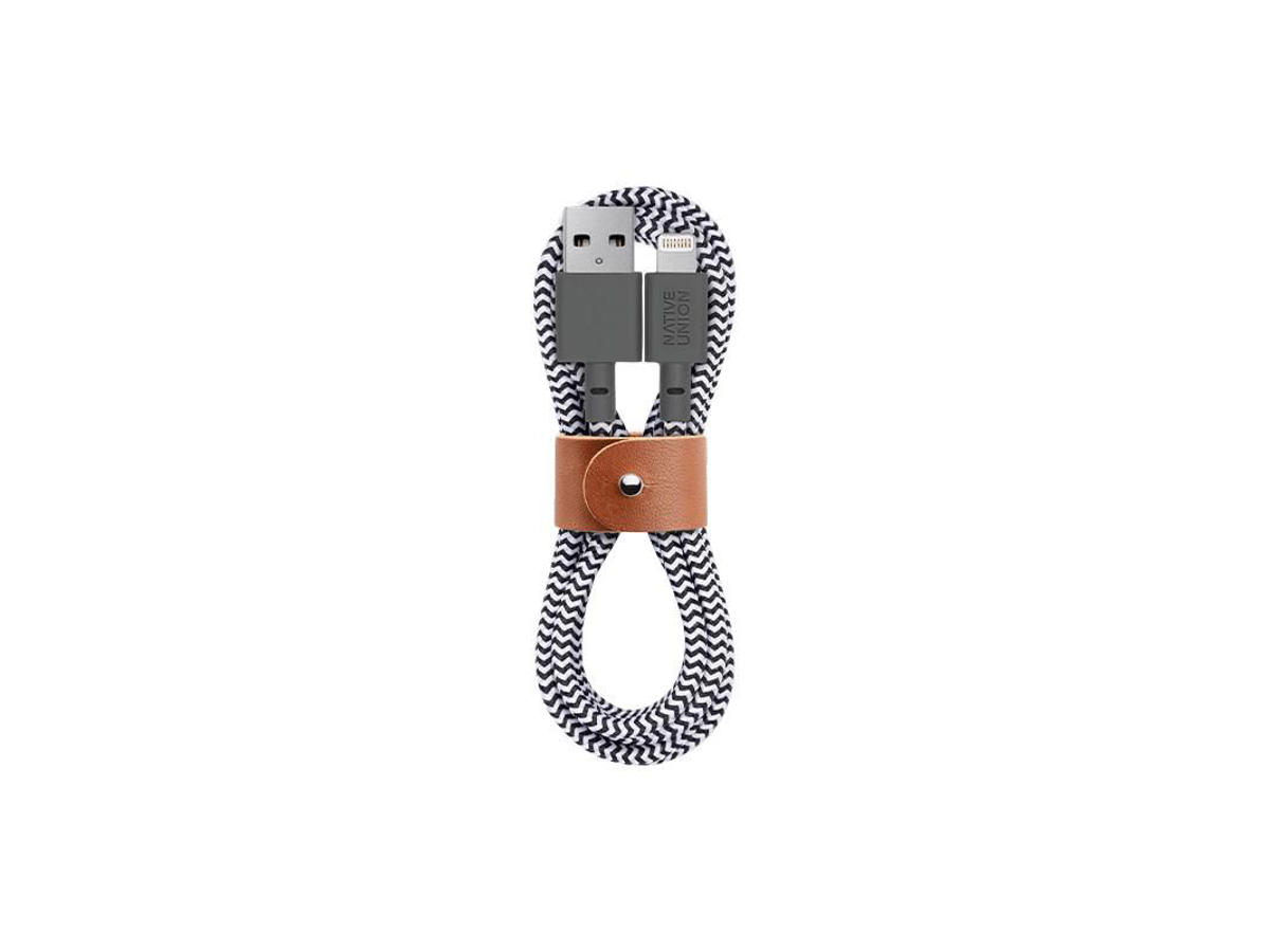Oplad smart og pænt med dette bæltekabel, der kommer pakket ind og fastgjort med et integreret læderbælte for at gøre sammenfiltrede kabler til fortiden.