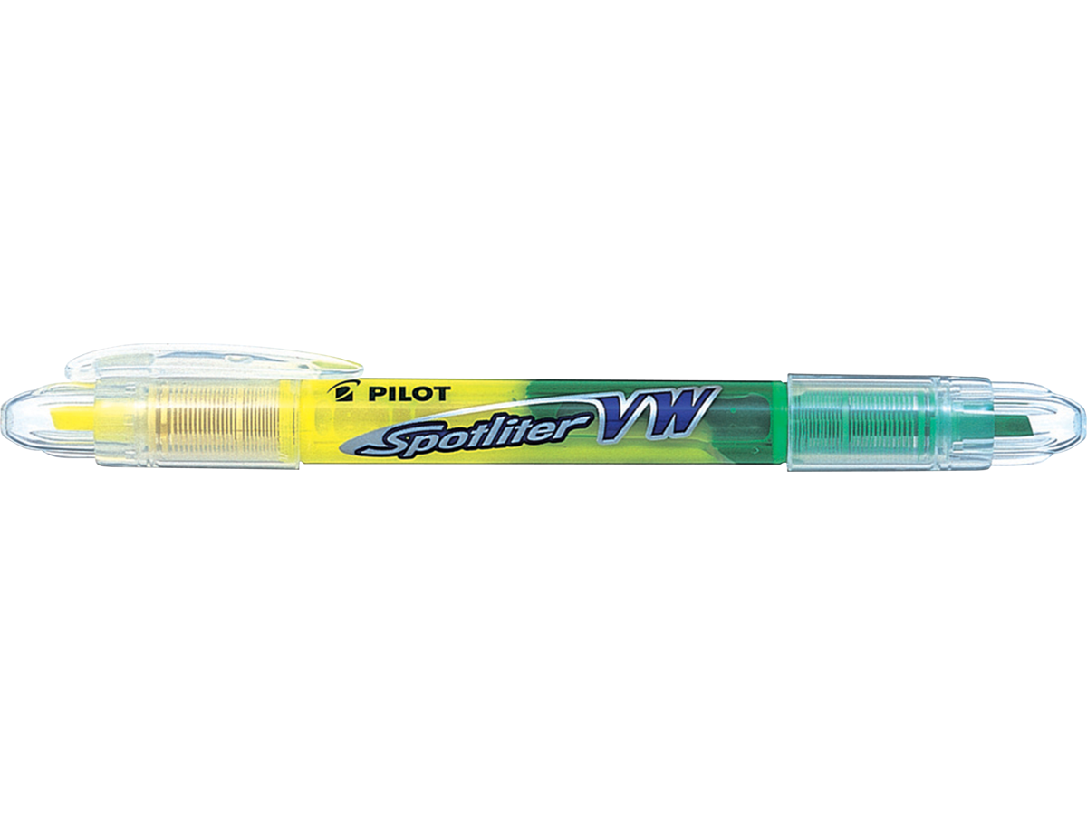 Spotliter VW er en overstregningspen pen med 2 farver i samme pen 70% gul blæk og 30% grøn blæk. Flydende blæk som giver en jævn overstregning uanset skrivehastighed. Skriver til sidste dråbe og kan ligge uden hætte i flere dage uden at tørre ud.