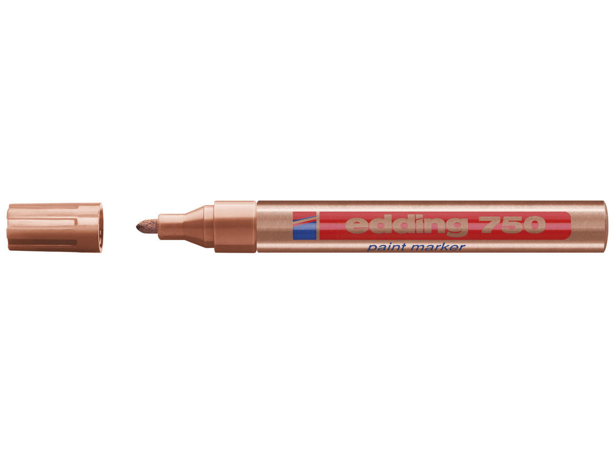 edding 750 Lakmarkør Kobber er en Blank Paintmarker, udviklet til at levere utrolig uigennemtrængelig og permanent skrift på glatte og jævne overflader, både mørke og transparente.