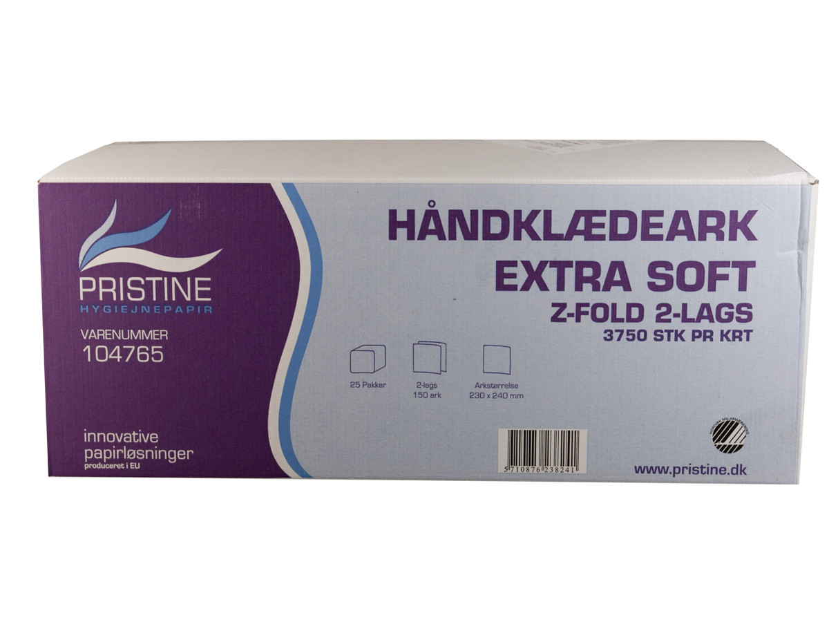Håndklædeark Pristine Z-fold extra soft 2-lags 3750 stk