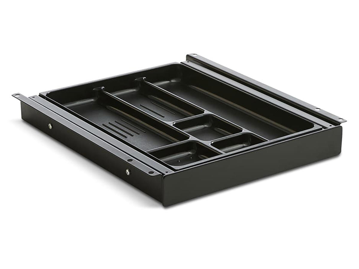 En skuffe med rig mulighed for overblik og opbevaring. Pennebakkerne leveres med 110% kulisseudtræk, således ethvert hjørne af skuffen har fuld tilgængelighed og derved optimal pladsudnyttelse. Pennebakken monteres direkte op under skrivebordet og tillader derfor maksimal plads til benene under skrivebordet.