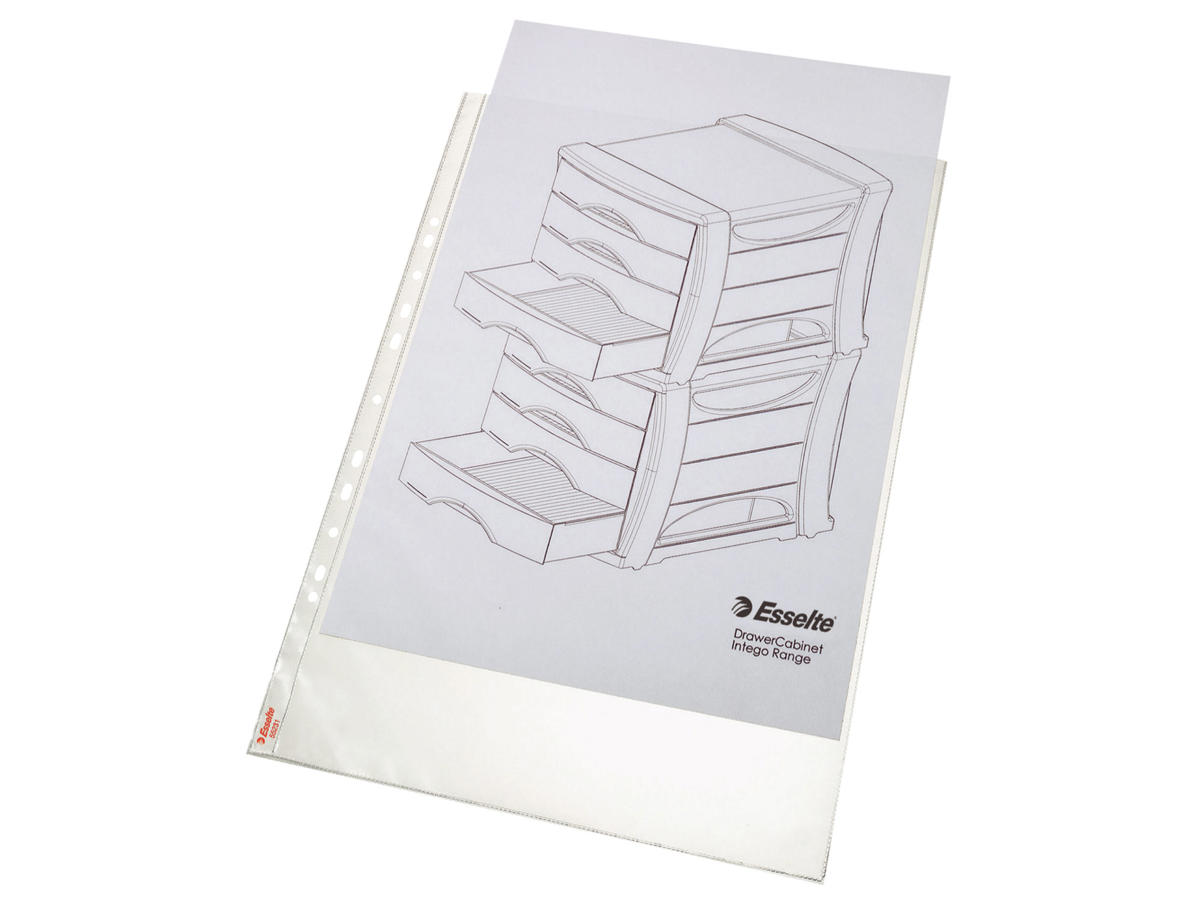 Esselte Kvalitetslomme er ikke bare praktisk, den er også designet med stor opmærksomhed på detaljer. Den klare PP-folie giver dig fuld visibilitet af dine dokumenter, mens dens prægede overflade tilføjer et strejf af elegance. Lommen er også universelt kompatibel med 11 huller til brug i diverse ringbind og arkfiler.