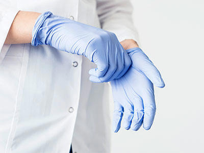 - Tag evt. ringe, smykker og ur af og derefter påfør dine engangshandsker, vær sikker på at disse sidder tæt til dine hænder, og kontrollér at der ingen brud eller revner er at finde i handsken.