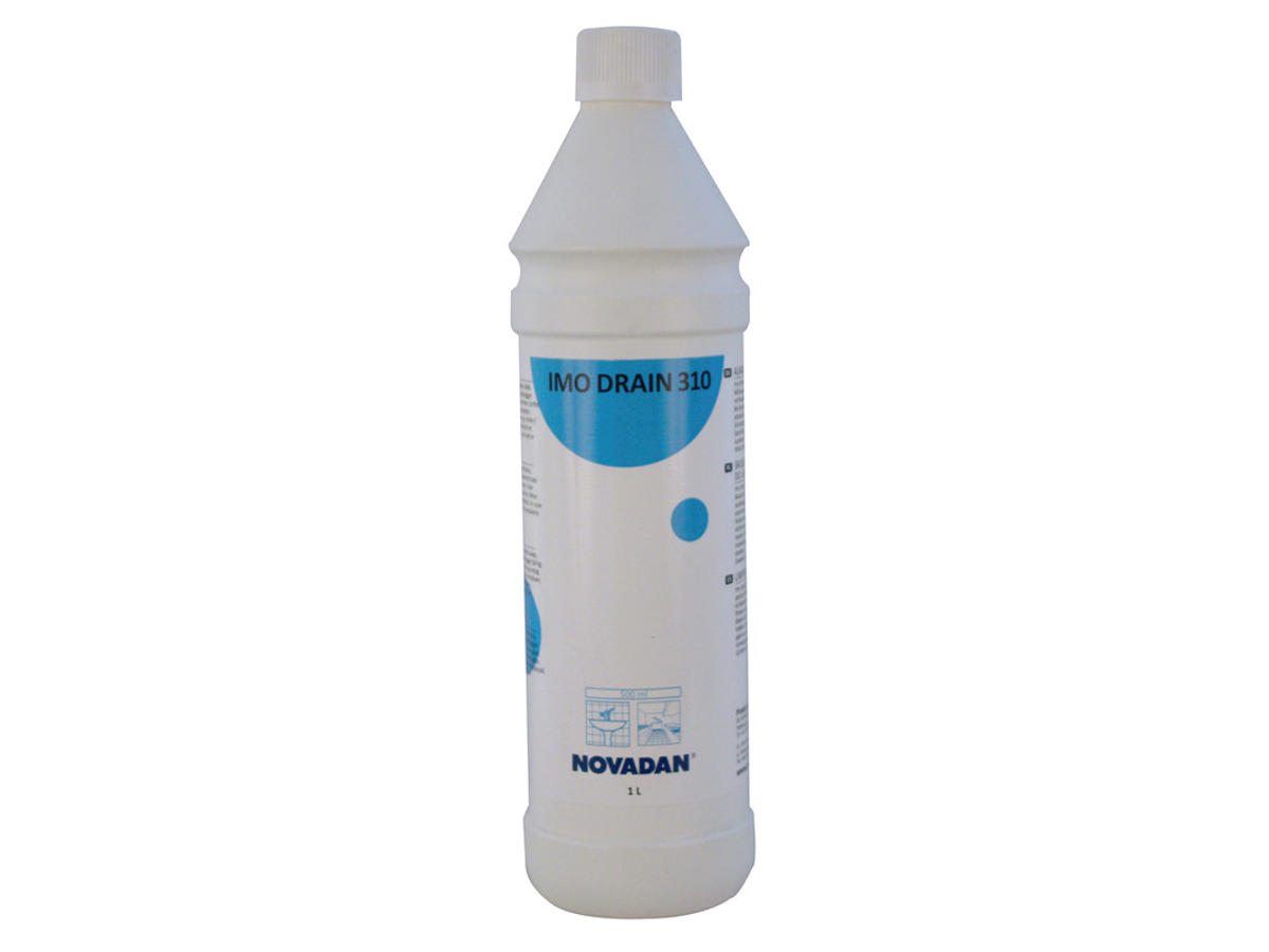 IMO DRAIN 310 anvendes til rengøring af helt eller delvist stoppede afløb. Opløser effektivt fedt, hår og sæbeaflejringer, samt forebygger dårlig lugt.