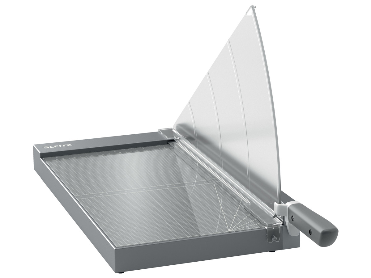 Leitz Precision Office Pro A3 Guillotine er perfekt til almindelig kontorbrug til skæring af papir, etiketter, folier, fotos, laminater, karton og matboard. Denne kraftfulde og robuste kommercielle guillotinetrimmer skærer ubesværet op til 25 ark A3-papir (80 g/m2) hurtigt og præcist. Har den unikke EdgeGlow lysstråleteknologi, der oplyser skærkanten for bedre synlighed og maksimal præcision. Den klare, manuelle papirklemme holder papiret sikkert, mens det ergonomiske håndtag giver mulighed for komfortabel og nem klipning. Let at bruge metrisk læselineal gør det hurtigt og bekvemt at justere papiret på det glatte glasbord. Klingebeskytteren giver total beskyttelse, og klingesikkerhedslåsen sikrer bladet, når det ikke er i brug. Med en klinge i rustfrit stål af høj kvalitet, en robust arbejdsflade og en udvidet 5-års garanti kan du være sikker på, at denne A3 papirskærer vil give præcise snit i mange år fremover. - Kraftig og robust A3 papirskærer. - Til hyppig brug på kontoret. - Ubesværet og præcis kommerciel papirskærer. - Kraftig og robust A3-håndtagsskærer, ideel til hyppig og omfattende brug på kontoret. Klingen i rustfrit stål af høj kvalitet skærer op til 25 ark 80 g/m² papir eller andre materialer såsom etiketter, folier, fotos, laminater, pap og pas. -partout karton Unik EdgeGlow lysstråle oplyser skærkanten for bedre synlighed og maksimal præcision Ergonomisk håndtag for ubesværede og præcise resultater i enhver applikation Klar, manuel papirklemme sikrer ingen glidning ved skæring Super glat glasarbejdsflade med enkel metrisk læselineal, vinkel guider og præcise linealer til nem papirjustering Robust, men let aluminiumsbund med skridsikre gummifødder for sikkerhed og stabilitet Klingebeskytter giver total beskyttelse, og klingesikkerhedslås sikrer bladet, når det ikke er i brug. Leitz guillotine af høj kvalitet med 5 års garanti (ekskl. normale sliddele og forbrugsvarer)