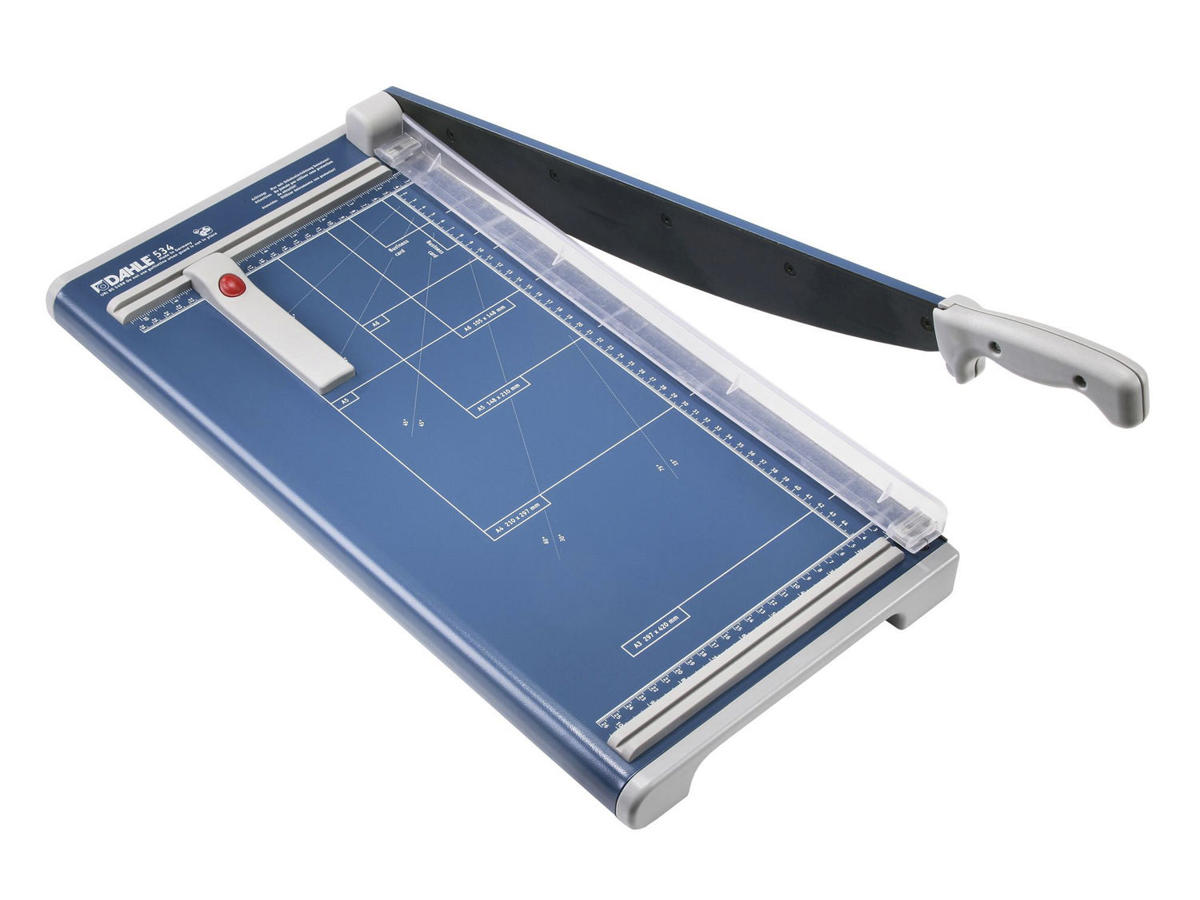 Her får du rigtig meget for pengene. Med en skærehøjde på 1,5 mm kan du skære op til 13 ark 80 grams papir ad gangen. Skærelængden på 460 mm giver dig mulighed for at skære A3. Arkene holdes på plads med en manuel håndpresse.