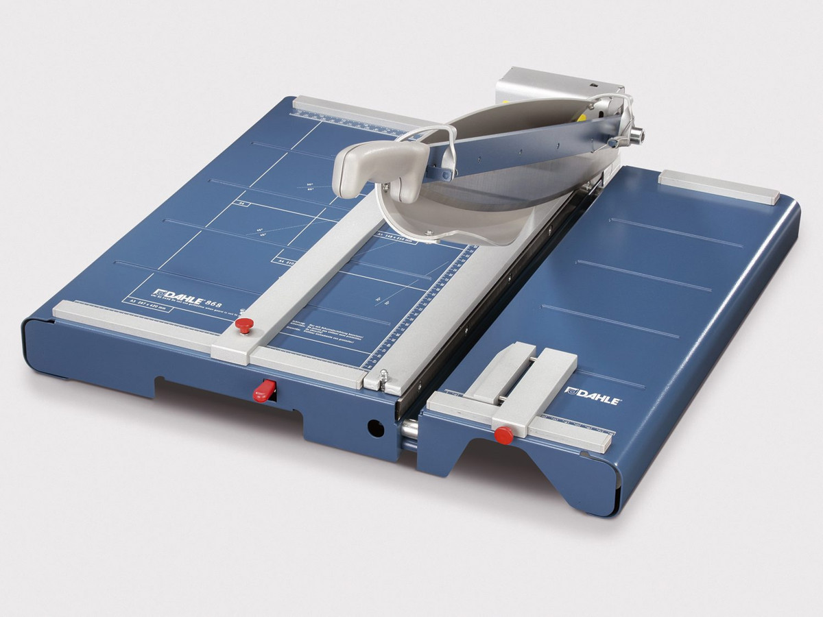 Dahle 868 - skæremaskine med komplet udstyr. Nye og innovative funktioner som opfylder de fleste krav til en skærremaskine. Den ny udviklede funktion, hvor bløde og sensitive materialer kan skæres uden besvær, da den automatiske pressebalk kan de-aktiveres. Derudover et ekstra stort side/anlægsbord, smalskære/frontanlæg samt præcisions lasermodul er inkluderet. 5 års garanti (Gælder ikke sliddele.)