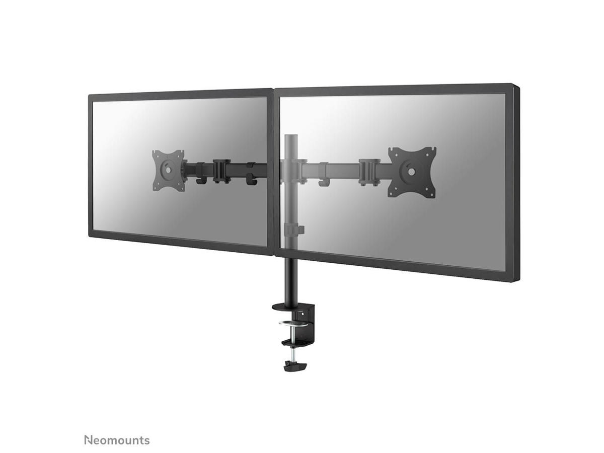 Skrivebordsmontering, model Nm-D135Dblack er en vippe-, dreje- og drejelig bordholder til 2 fladskærme op til 27”. Dette beslag er et godt valg til pladsbesparende placering på skriveborde, der bruger en skrivebordsklemme eller tyllemontering.'s alsidige tilt- (90°), rotation (360°) og drejning (180°) teknologi gør det muligt for monteringen at skifte til enhver synsvinkel for fuldt ud at drage fordel af fladskærmens muligheder. Beslaget kan manuelt højdejusteres fra 0 til 40 centimeter. Dybdejusterbar fra 4 til 43 centimeter. En innovativ kabelstyring skjuler og leder kabler fra montering til fladskærm. Skjul dine kabler for at holde arbejdspladsen pæn og ryddelig. Nm-D135Dblack har tre omdrejningspunkter og er velegnet til skærme op til 27" (69 cm). Vægtkapaciteten på dette produkt er 8 kg hver skærm. Skrivebordsmonteringen er velegnet til skærme, der opfylder Vesa hulmønster 75X75 eller 100X100Mm. Brug af en ergonomisk monteret nakke- og rygklager kan undgås ideel til brug på kontorer og på skranker eller i et receptionsområde. Alt installationsmateriale er inkluderet i produktet.
