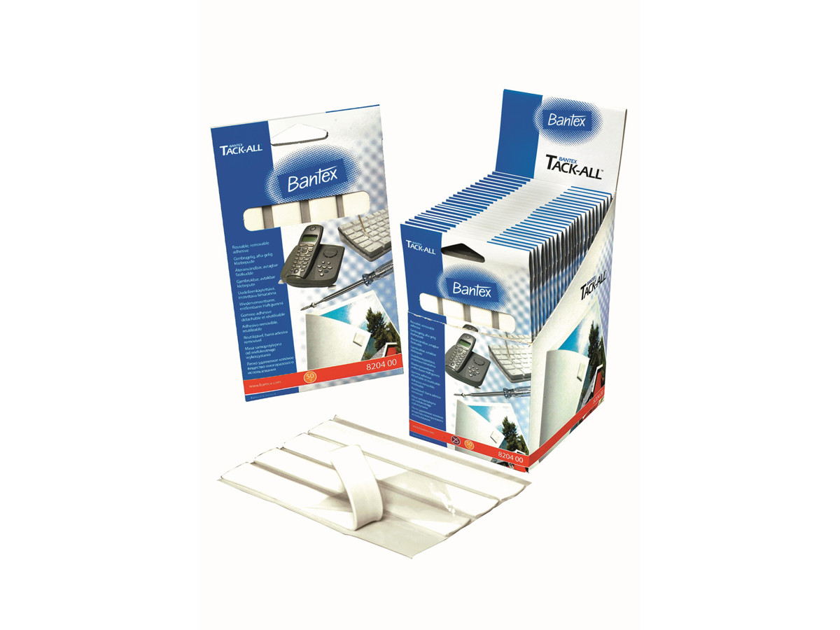 Tack-All klæbemasse fra Bantex er en genbrugelig og aftagelig hæftemasse af høj kvalitet, der bevarer sin klæbeevne i lang tid. Den er ideel til opklæbning og fastholdning, men kan også anvendes til rengøring og lignende opgaver. Det er vigtigt at bemærke, at klæbegummiet ikke er egnet til porøse overflader som tapet.