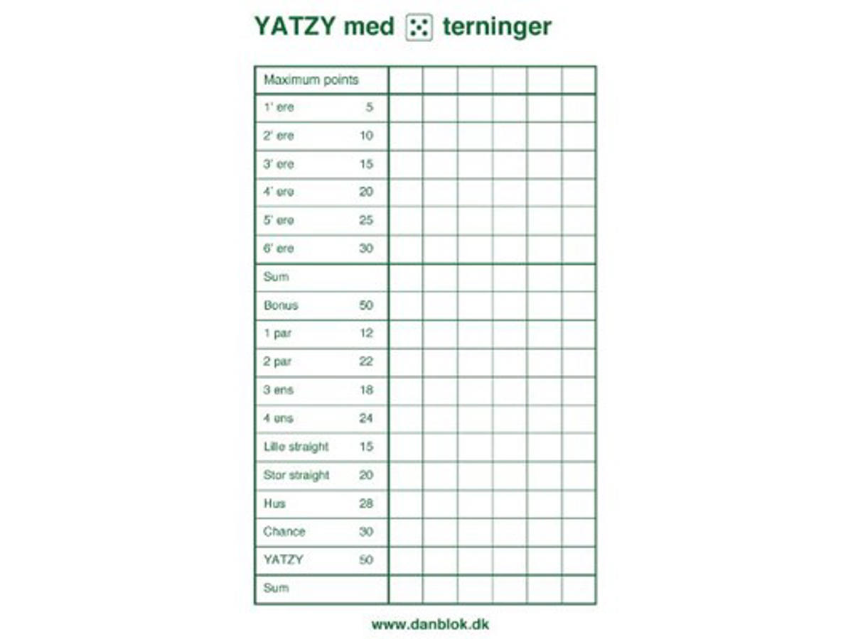 Yatzyblok til 5 terninger 3 blokke