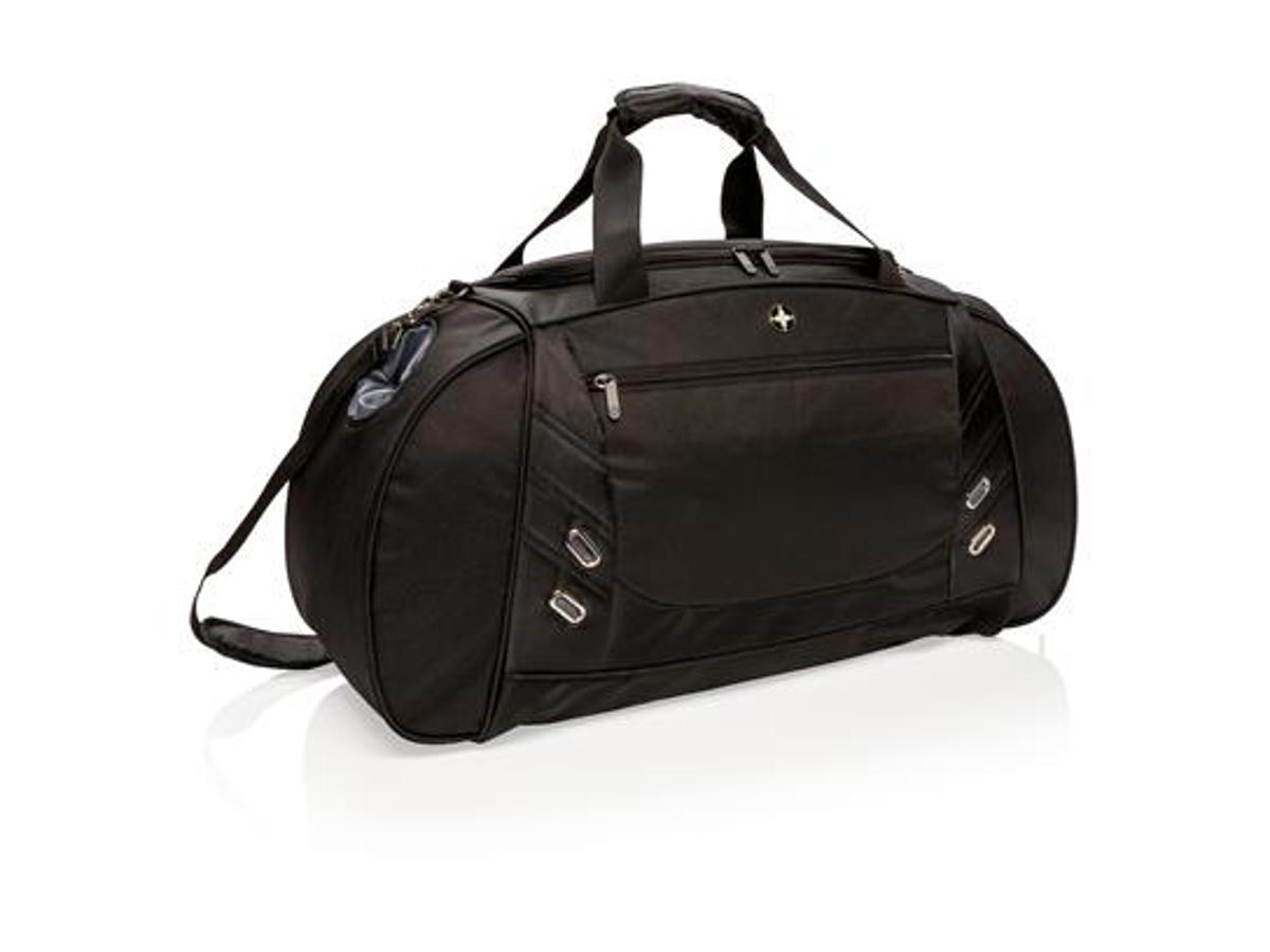 Denne polyester-taske i 600D/1680D polyester har en sportslig stil til fitnesscenteret eller som afslappet rejsetaske. Inklusive rummeligt hovedrum med U-formet lynlåslukning ovenpå, skorum med sideåbning og ventilation samt et flaskerum på siden. Frontlomme med lynlås for hurtig adgang til smartphones og andet rejsetilbehør. Justerbar skulderrem og dobbelte tophåndtag for bærekomfort og alsidighed. PVC-fri.