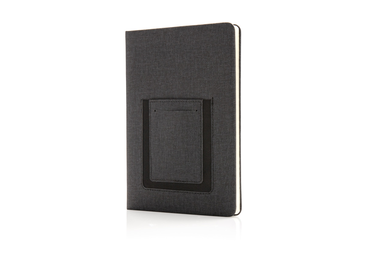 Luksus A5 notesbog med telefon og kort lomme. 80 ark/ 160 siders cremefarvet sider af 78gr/m2 papirkvalitet. Inklusive sidedeler.