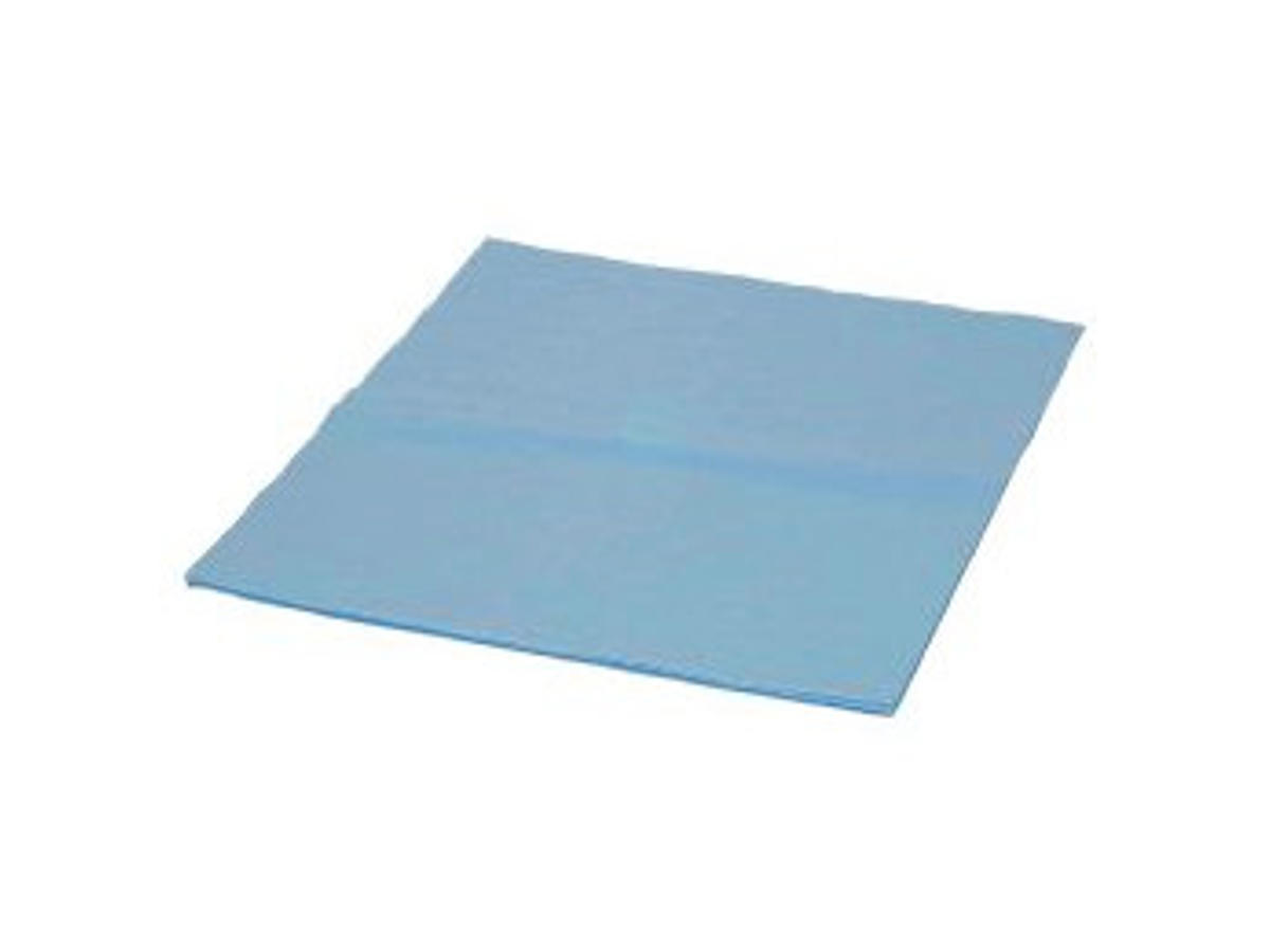 Blå engangstandlægeservietter uden halsudskæring, sørger for at tøjet indenunder forbliver tørt og rent.