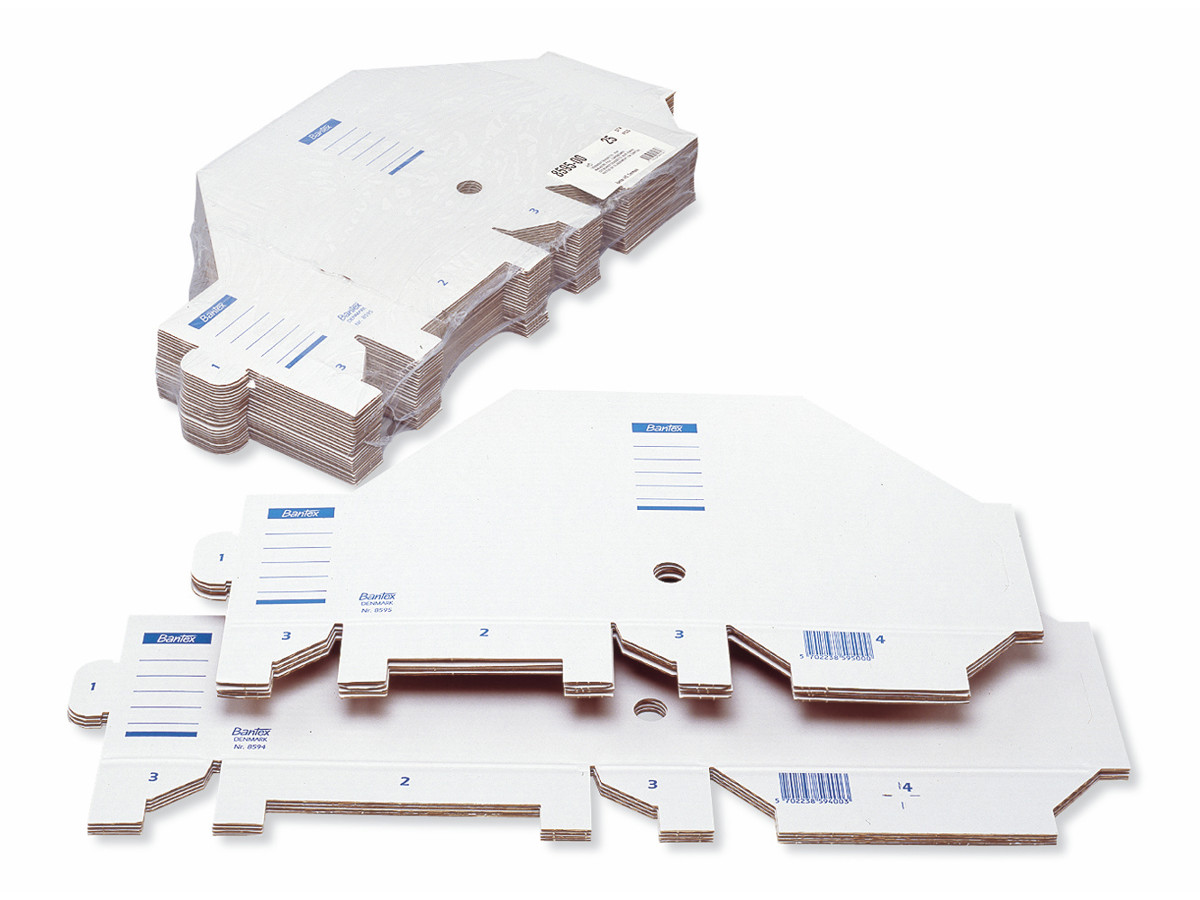Tidsskriftsamler, A4, kraftig karton, hvid m/ blå rygetiket.