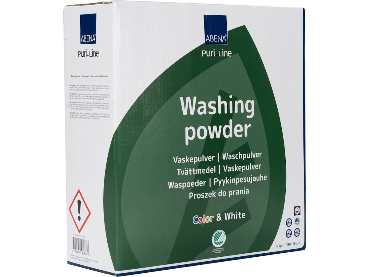 I ABENAs komplette sortiment af rengøringsartikler finder du vores effektive vaskepulver til både hvide og kulørte tekstiler. Vaskepulveret er miljømærket med Svanemærket og indeholder hverken fosfat, optisk hvidt, farve eller parfume, hvilket markant mindsker risikoen for allergi. Du opnår de mest optimale resultater ved vask på minimum 30°C. Vaskepulveret bør ikke anvendes til materialer som uld og silke. Her anbefaler vi, at du bruger vores vaskepulver til uld og finvask. Med ABENAs vaskepulver får du rene og pletfri tekstiler, idet indholdet af blandt andet enzymer effektivt nedbryder proteiner, stivelse og fedt, der netop ofte er at finde i madpletter, sved og lignende pletter. Enzymerne er virksomme op til 70°C. En pakke vaskepulver rækker til ca. 55 vaske ved vask med middelhårdt vand (8-14 °dH) og 3-5 kg normalt snavset tøj.